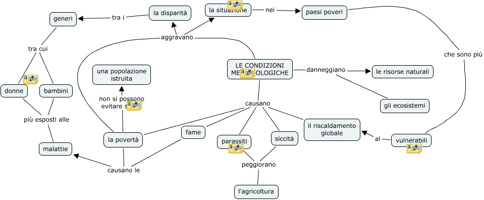 Questa Cmap, creata con IHMC CmapTools, contiene informazioni relative a: L'onu giorgia nicole, LE CONDIZIONI METEREOLOGICHE aggravano la povertà, la povertà causano parassiti, LE CONDIZIONI METEREOLOGICHE danneggiano le risorse naturali, LE CONDIZIONI METEREOLOGICHE causano parassiti, donne più esposti alle malattie, parassiti peggiorano l'agricoltura, LE CONDIZIONI METEREOLOGICHE causano fame, LE CONDIZIONI METEREOLOGICHE aggravano la situazione, vulnerabili al il riscaldamento globale, fame causano le malattie, generi tra cui bambini, la povertà non si possono evitare senza una popolazione istruita, siccità causano fame, generi tra cui donne, il riscaldamento globale causano fame, la povertà causano fame, LE CONDIZIONI METEREOLOGICHE aggravano la disparità, paesi poveri che sono più vulnerabili, la disparità tra i generi, bambini più esposti alle malattie