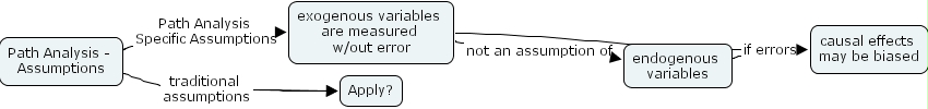 path analysis - assumptions, apply?, exogenous variables are measured w out error, endogenous variables, path analysis - assumptions, causal effects may be biased