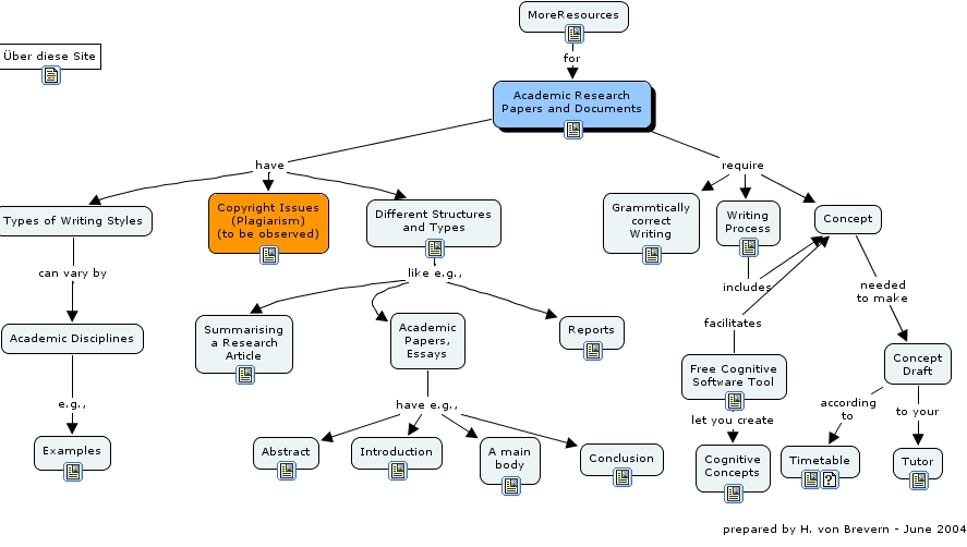 academic documents, conclusion, grammtically correct writing, a main body, introduction, concept draft, writing process, cognitive concepts, copyright issues (plagiarism) (to be observed), reports, timetable, summarising a research article, free cognitive software tool, concept, tutor, types of writing styles, academic research papers and documents, �ber diese site, examples, academic papers, essays, different structures and types, abstract, academic disciplines, prepared by h. von brevern - june 2004, moreresources