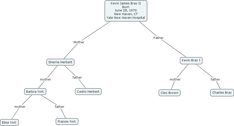 family tree, charles bray, kevin bray i, cleo brown, francis york, barbra york, sherrie herbert, elise york, cedric herbert, kevin james bray ii born june 28, 1979 new haven, ct yale new haven hospital