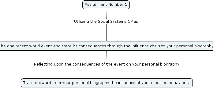 socsystemassignone, trace outward from your personal biography the influence of your modified behaviors. , assignment number 1, cite one recent world event and trace its consequences through the influence chain to your personal biography.