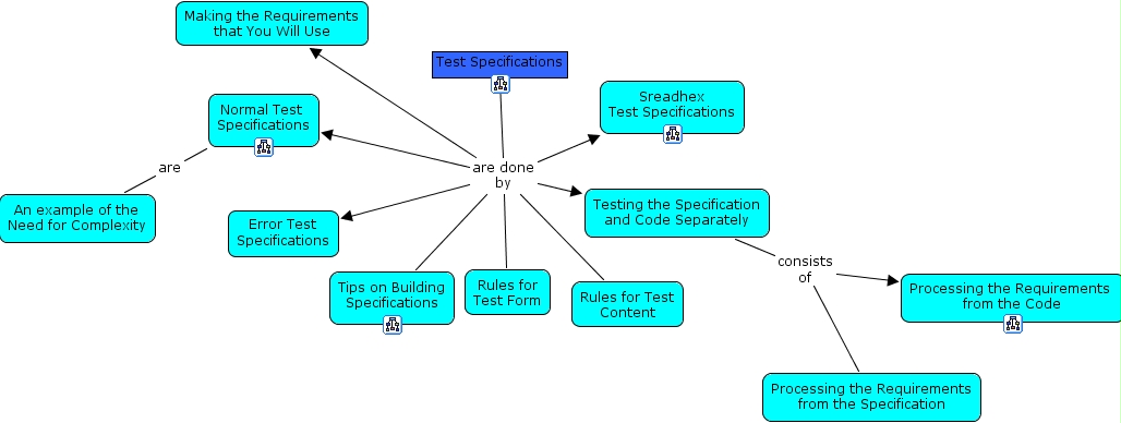 test specifications, an example of the need for complexity, processing the requirements from the specification, sreadhex test specifications, making the requirements that you will use, rules for test content, tips on building specifications, testing the specification and code separately, normal test specifications, processing the requirements from the code, test specifications, error test specifications, rules for test form