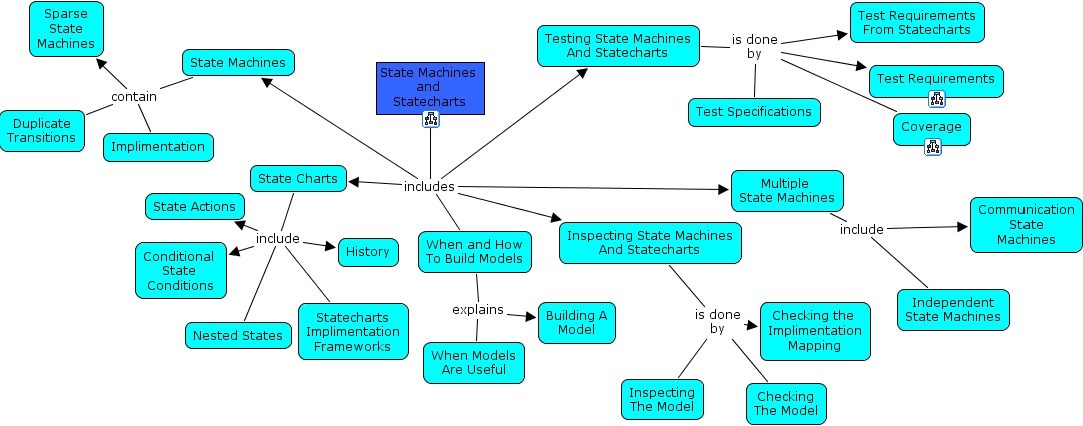 state machines and statecharts, state machines, statecharts implimentation frameworks, sparse state machines, test requirements, test requirements from statecharts, independent state machines, test specifications, checking the implimentation mapping, nested states, coverage, multiple state machines, state charts, when and how to build models, when models are useful, testing state machines and statecharts, checking the model, state machines and statecharts, state actions, conditional state conditions, communication state machines, inspecting state machines and statecharts, implimentation, inspecting the model, duplicate transitions, building a model, history