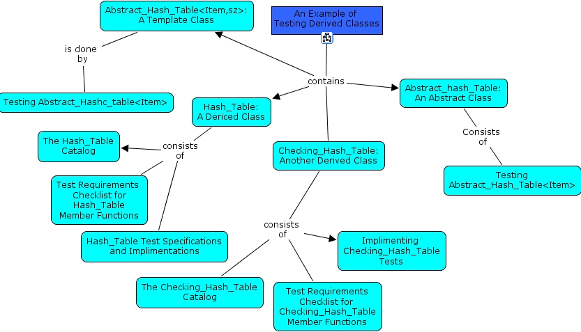 an example of testing derived classes, abstract hash table an abstract class, testing abstract hashc table item , test requirements checklist for checking hash table member functions, test requirements checklist for hash table member functions, hash table test specifications and implimentations, the checking hash table catalog, hash table a dericed class, testing abstract hash table item , the hash table catalog, an example of testing derived classes, abstract hash table item,sz a template class, checking hash table another derived class, implimenting checking hash table tests