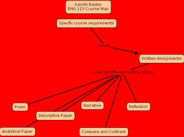 easley eng 113 course map, analytical paper, reflection, specific course requirements, compare and contrast, poem, narrative, descriptive paper, written assignments, kandis easley eng 113 course map