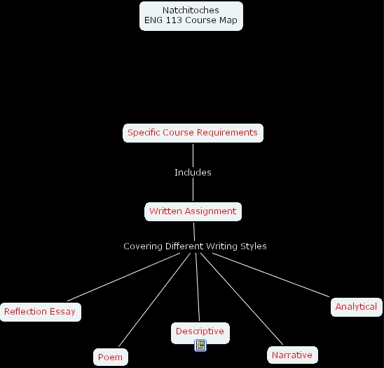 natchitoches, narrative, written assignment, poem, specific course requirements, reflection essay, natchitoches eng 113 course map, descriptive, analytical