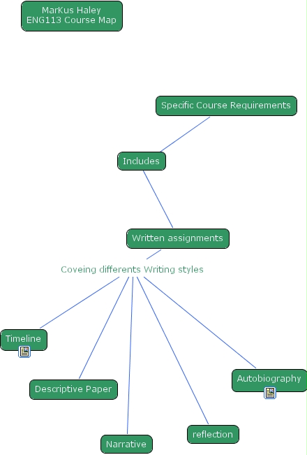haley eng 113 course map, reflection, descriptive paper, autobiography, timeline, narrative, written assignments, markus haley eng113 course map, specific course requirements, includes