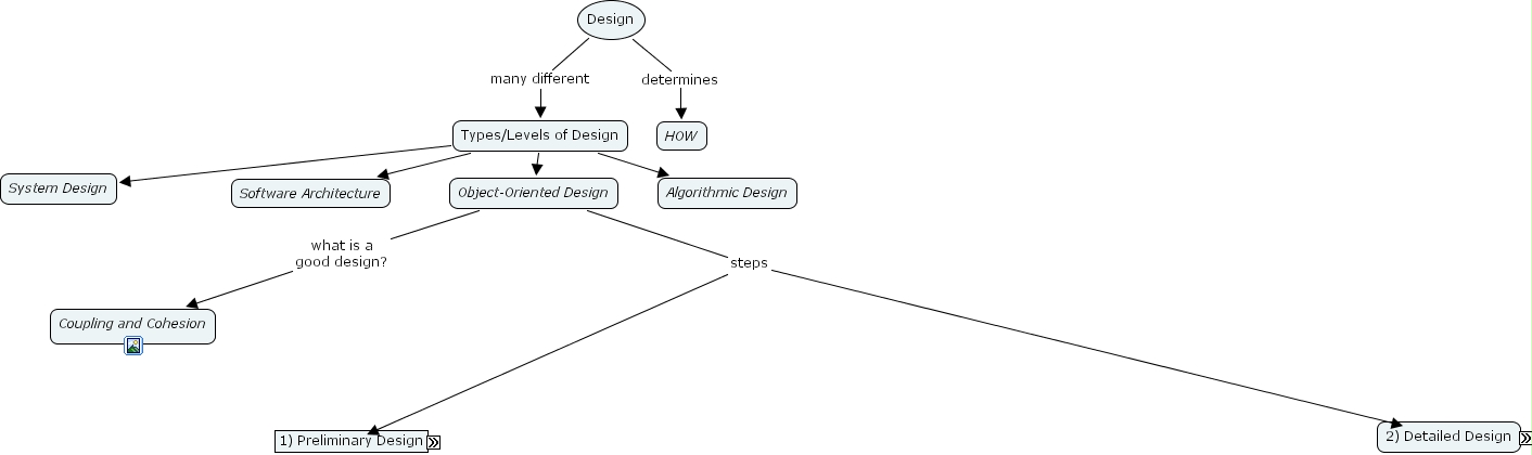 Input: 1) Analysis-level Class Diagram 2) Text Use Cases 1) Preliminary Design using Robustness Analysis follows these, Input: 1) Analysis-level Class Diagram 2) Text Use Cases 1) Preliminary Design using Robustness Analysis uses, Input: 1) Analysis-level Class Diagram 2) Text Use Cases 1) Preliminary Design using Robustness Analysis Output: Robustness Diagram, Input: 1) Analysis-level Class Diagram 2) Text Use Cases 1) Preliminary Design using Robustness Analysis then, 2) Detailed Design using Interaction Modeling then Updates Artifacts, Input: 1) Analysis-level Class Diagram 2) Text Use Cases 3) Robustness Diagram 2) Detailed Design using Interaction Modeling then, Input: 1) Analysis-level Class Diagram 2) Text Use Cases 3) Robustness Diagram 2) Detailed Design using Interaction Modeling creates, Input: 1) Analysis-level Class Diagram 2) Text Use Cases 3) Robustness Diagram 2) Detailed Design using Interaction Modeling follows these, Input: 1) Analysis-level Class Diagram 2) Text Use Cases 3) Robustness Diagram 2) Detailed Design using Interaction Modeling Output: UML Sequence Diagram, Types/Levels of Design Object-Oriented Design what is a good design?, Types/Levels of Design Object-Oriented Design steps, 1) Preliminary Design using Robustness Analysis follows these Guidelines, 1) Preliminary Design using Robustness Analysis follows these Steps, 1) Preliminary Design using Robustness Analysis follows these Rules, 2) Detailed Design using Interaction Modeling creates Sequence Diagram, 2) Detailed Design using Interaction Modeling follows these Steps, 1) Preliminary Design using Robustness Analysis uses 3 Symbols, Object-Oriented Design what is a good design? Coupling and Cohesion, Design determines HOW, 1) Preliminary Design using Robustness Analysis then Updates Artifacts, Design many different Types/Levels of Design, Object-Oriented Design steps 2) Detailed Design using Interaction Modeling, Object-Oriented Design steps 1) Preliminary Design using Robustness Analysis