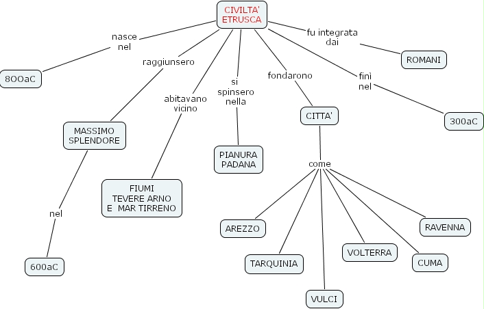 CIVILTA' ETRUSCA raggiunsero MASSIMO SPLENDORE, CIVILTA' ETRUSCA si spinsero nella PIANURA PADANA, CIVILTA' ETRUSCA fin� nel 300aC, CIVILTA' ETRUSCA nasce nel 8OOaC, MASSIMO SPLENDORE nel 600aC, CIVILTA' ETRUSCA abitavano vicino FIUMI TEVERE ARNO E MAR TIRRENO, CIVILTA' ETRUSCA fondarono CITTA', CIVILTA' ETRUSCA fu integrata dai ROMANI, CITTA' come CUMA, CITTA' come AREZZO, CITTA' come VOLTERRA, CITTA' come TARQUINIA, CITTA' come VULCI, CITTA' come RAVENNA