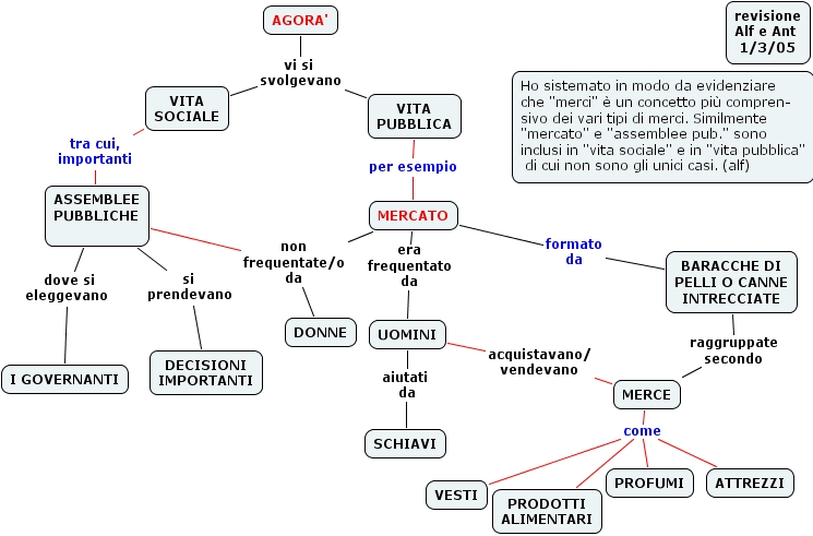 ASSEMBLEE PUBBLICHE dove si eleggevano I GOVERNANTI, VITA SOCIALE tra cui, importanti ASSEMBLEE PUBBLICHE , BARACCHE DI PELLI O CANNE INTRECCIATE raggruppate secondo MERCE, UOMINI aiutati da SCHIAVI, VITA PUBBLICA per esempio MERCATO, UOMINI acquistavano/ vendevano MERCE, MERCE come PROFUMI, MERCE come ATTREZZI, MERCE come VESTI, MERCE come PRODOTTI ALIMENTARI, MERCATO era frequentato da UOMINI, AGORA' vi si svolgevano VITA PUBBLICA, AGORA' vi si svolgevano VITA SOCIALE, ASSEMBLEE PUBBLICHE non frequentate/o da DONNE, MERCATO non frequentate/o da DONNE, ASSEMBLEE PUBBLICHE si prendevano DECISIONI IMPORTANTI, MERCATO formato da BARACCHE DI PELLI O CANNE INTRECCIATE