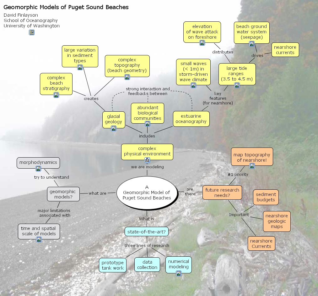 state-of-the-art? three lines of research prototype tank work, state-of-the-art? three lines of research data collection, state-of-the-art? three lines of research numerical modeling, A Geomorphic Model of Puget Sound Beaches we are modeling complex physical environment, A Geomorphic Model of Puget Sound Beaches what are geomorphic models?, glacial geology creates complex topography (beach geometry), glacial geology creates complex beach stratigraphy, glacial geology creates large variation in sediment types, future research needs? #1 priority map topography of nearshore!, A Geomorphic Model of Puget Sound Beaches What is state-of-the-art?, glacial geology strong interaction and feedbacks between estuarine oceanography, glacial geology strong interaction and feedbacks between abundant biological communities, A Geomorphic Model of Puget Sound Beaches are there future research needs?, future research needs? Important sediment budgets, future research needs? Important nearshore geologic maps, future research needs? Important nearshore Currents, complex physical environment includes glacial geology, complex physical environment includes estuarine oceanography, complex physical environment includes abundant biological communities, large tide ranges (3.5 to 4.5 m) distributes elevation of wave attack on foreshore, geomorphic models? major limitations associated with time and spatial scale of models, geomorphic models? try to understand morphodynamics, large tide ranges (3.5 to 4.5 m) drives nearshore currents, large tide ranges (3.5 to 4.5 m) drives beach ground water system (seepage), estuarine oceanography key features (for nearshore) large tide ranges (3.5 to 4.5 m), estuarine oceanography key features (for nearshore) small waves (< 1m) in storm-driven wave climate