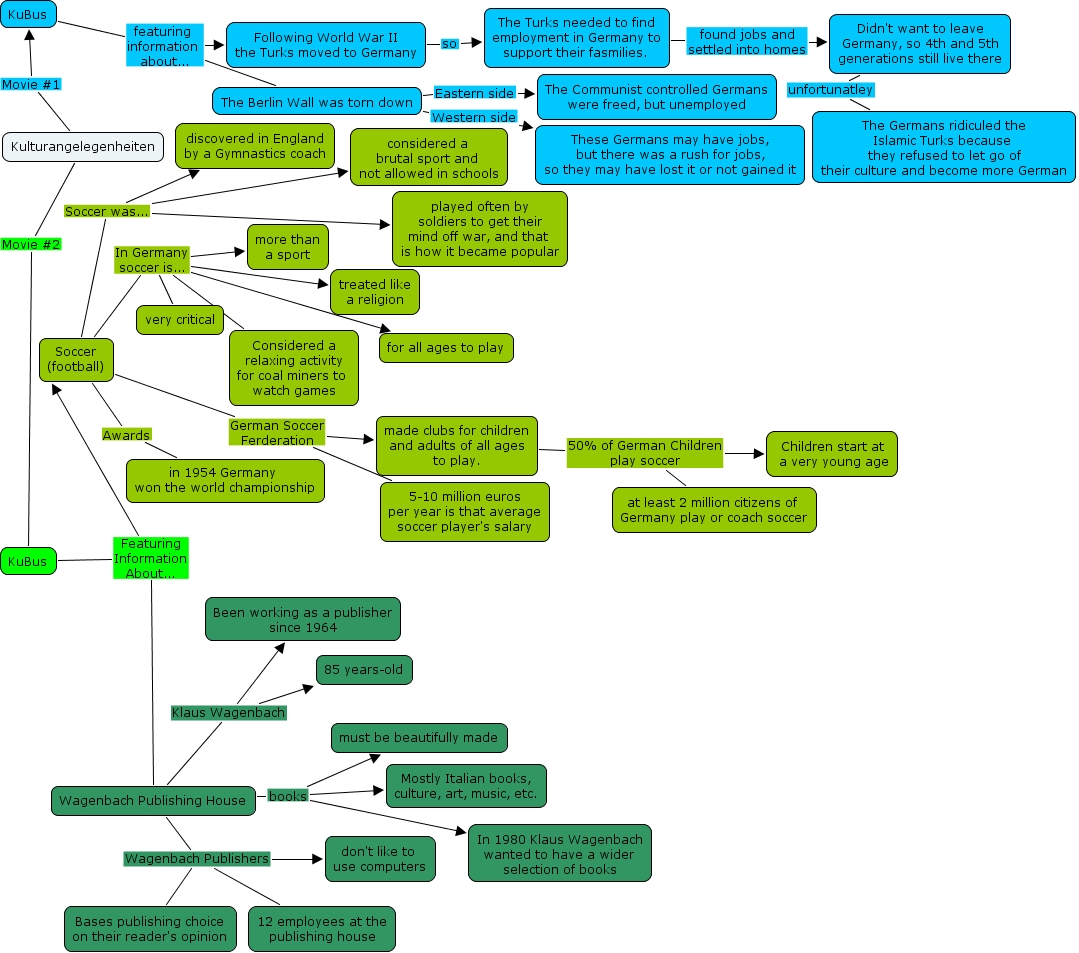 Culture C-map, Kulturangelegenheiten Movie #2 KuBus, Wagenbach Publishing House Klaus Wagenbach Been working as a publisher since 1964, Wagenbach Publishing House Wagenbach Publishers Bases publishing choice on their reader's opinion, The Turks needed to find employment in Germany to support their fasmilies. found jobs and settled into homes Didn't want to leave Germany, so 4th and 5th generations still live there, Following World War II the Turks moved to Germany so The Turks needed to find employment in Germany to support their fasmilies., Wagenbach Publishing House books In 1980 Klaus Wagenbach wanted to have a wider selection of books, Kulturangelegenheiten Movie #1 KuBus, KuBus featuring information about... The Berlin Wall was torn down, Wagenbach Publishing House Wagenbach Publishers don't like to use computers, Wagenbach Publishing House books must be beautifully made