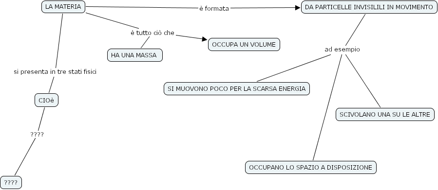 LA MATERIA � formata DA PARTICELLE INVISILILI IN MOVIMENTO, DA PARTICELLE INVISILILI IN MOVIMENTO ad esempio SCIVOLANO UNA SU LE ALTRE, DA PARTICELLE INVISILILI IN MOVIMENTO ad esempio OCCUPANO LO SPAZIO A DISPOSIZIONE, DA PARTICELLE INVISILILI IN MOVIMENTO ad esempio SI MUOVONO POCO PER LA SCARSA ENERGIA, LA MATERIA � tutto ci� che OCCUPA UN VOLUME, LA MATERIA � tutto ci� che HA UNA MASSA , LA MATERIA si presenta in tre stati fisici CIO�, CIO� ???? ????