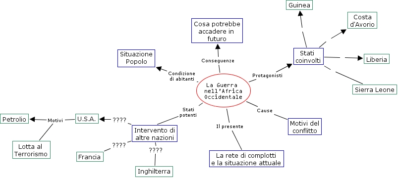 Mappa Tia1, La Guerra nell'Africa Occidentale Il presente La rete di complotti e la situazione attuale, Stati coinvolti Guinea, Stati coinvolti Liberia, La Guerra nell'Africa Occidentale Conseguenze Cosa potrebbe accadere in futuro, La Guerra nell'Africa Occidentale Protagonisti Stati coinvolti, Intervento di altre nazioni ???? Francia, U.S.A. Motivi Lotta al Terrorismo, Stati coinvolti Costa d'Avorio, Intervento di altre nazioni ???? Inghilterra, Intervento di altre nazioni ???? U.S.A.