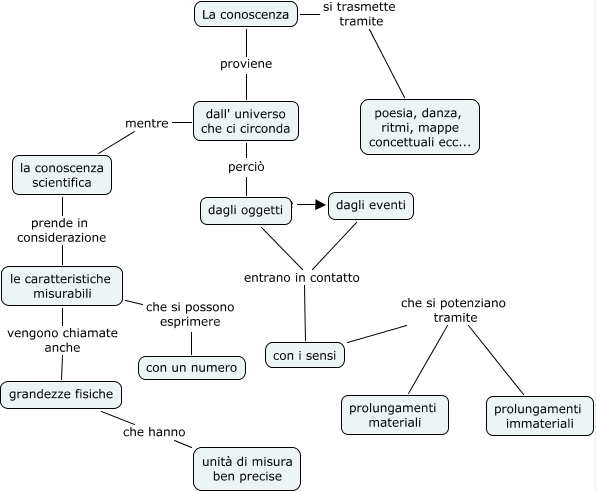 Sarai 1C_la conoscenza, La conoscenza proviene dall' universo che ci circonda, dall' universo che ci circonda perciò dagli oggetti, dagli eventi entrano in contatto con i sensi, dagli oggetti e dagli eventi, la conoscenza scientifica prende in considerazione le caratteristiche misurabili, le caratteristiche misurabili che si possono esprimere con un numero, le caratteristiche misurabili vengono chiamate anche grandezze fisiche, La conoscenza si trasmette tramite poesia, danza, ritmi, mappe concettuali ecc..., con i sensi che si potenziano tramite prolungamenti materiali, grandezze fisiche che hanno unità di misura ben precise