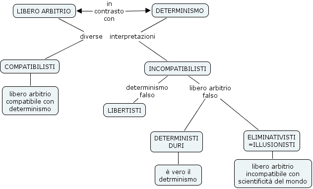 Libero arbitrio e determinismo (le varie correnti)-gruppo 3 (2° schema), ELIMINATIVISTI =ILLUSIONISTI ???? libero arbitrio incompatibile con scientificità del mondo, LIBERO ARBITRIO diverse COMPATIBILISTI, INCOMPATIBILISTI determinismo falso LIBERTISTI, COMPATIBILISTI ???? libero arbitrio compatibile con determinismo, DETERMINISTI DURI ???? è vero il detrminismo, INCOMPATIBILISTI libero arbitrio falso ELIMINATIVISTI =ILLUSIONISTI, INCOMPATIBILISTI libero arbitrio falso DETERMINISTI DURI, DETERMINISMO interpretazioni INCOMPATIBILISTI