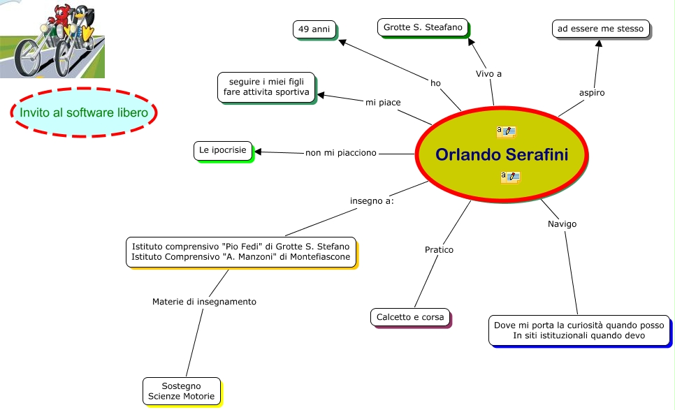la mia prima mappa, Orlando Serafini Vivo a Grotte S. Steafano, Orlando Serafini ho 49 anni, Orlando Serafini mi piace seguire i miei figli fare attivita sportiva, Orlando Serafini Pratico Calcetto e corsa, Orlando Serafini insegno a: Istituto comprensivo "Pio Fedi" di Grotte S. Stefano Istituto Comprensivo "A. Manzoni" di Montefiascone, Orlando Serafini non mi piacciono Le ipocrisie, Istituto comprensivo "Pio Fedi" di Grotte S. Stefano Istituto Comprensivo "A. Manzoni" di Montefiascone Materie di insegnamento Sostegno Scienze Motorie, Orlando Serafini aspiro ad essere me stesso, Orlando Serafini Navigo Dove mi porta la curiosità quando posso In siti istituzionali quando devo