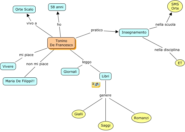 Autopresentazione, Tonino De Francesco pratico Insegnamento, Tonino De Francesco leggo Libri, Insegnamento nella scuola SMS Orte, Tonino De Francesco non mi piace Maria De Filippi!!, Tonino De Francesco vivo a Orte Scalo, Libri genere Gialli, Libri genere Saggi, Insegnamento nella disciplina ET, Tonino De Francesco leggo Giornali, Libri genere Romanzi
