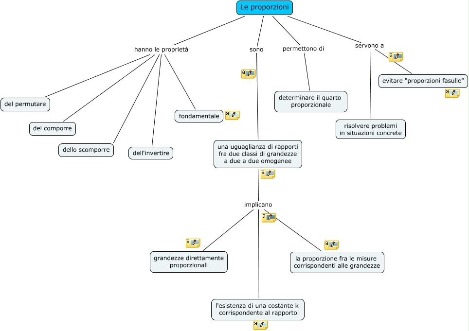 le proporzioni, Le proporzioni hanno le proprietà fondamentale, Le proporzioni hanno le proprietà dell'invertire, Le proporzioni permettono di determinare il quarto proporzionale, Le proporzioni hanno le proprietà dello scomporre, Le proporzioni servono a risolvere problemi in situazioni concrete, Le proporzioni hanno le proprietà del comporre, Le proporzioni sono una uguaglianza di rapporti fra due classi di grandezze a due a due omogenee, una uguaglianza di rapporti fra due classi di grandezze a due a due omogenee implicano grandezze direttamente proporzionali, Le proporzioni servono a evitare "proporzioni fasulle", una uguaglianza di rapporti fra due classi di grandezze a due a due omogenee implicano la proporzione fra le misure corrispondenti alle grandezze