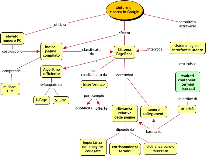 Google2_rev, priorità basata su numero collegamenti, rilevanza relativa delle pagine dipende da vicinanza parole ricercate, rilevanza relativa delle pagine determina numero collegamenti, indice pagine compilato classificato da Sistema PageRank, sistema logico - interfaccia utente consultato attraverso Motore di ricerca in Google, elevato numero PC costruiscono indice pagine compilato, interferenze per esempio pubblicità, risultati contenenti termini ricercati in ordine di priorità, rilevanza relativa delle pagine dipende da importanza della pagine collegate, rilevanza relativa delle pagine determina Sistema PageRank