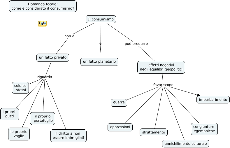 Questa Cmap, creata con IHMC CmapTools, contiene informazioni relative a: mappa consumismo 2_volpini, effetti negativi negli equilibri geopolitici favoriscono imbarbarimento, un fatto privato riguarda le proprie voglie, Il consumismo è un fatto planetario, un fatto privato riguarda il proprio portafoglio, Il consumismo non è un fatto privato, effetti negativi negli equilibri geopolitici favoriscono sfruttamento, un fatto privato riguarda il diritto a non essere imbrogliati, un fatto privato riguarda solo se stessi, effetti negativi negli equilibri geopolitici favoriscono annichilimento culturale, effetti negativi negli equilibri geopolitici favoriscono guerre, Il consumismo può produrre effetti negativi negli equilibri geopolitici, effetti negativi negli equilibri geopolitici favoriscono oppressioni, un fatto privato riguarda i propri gusti, effetti negativi negli equilibri geopolitici favoriscono congiunture egemoniche