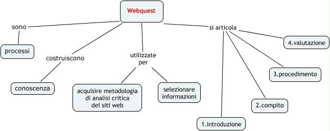 Webquest, 4.valutazione si articola Webquest, 3.procedimento si articola Webquest, Webquest costruiscono conoscenza, selezionare informazioni utilizzate per Webquest, processi sono Webquest, 1.introduzione si articola Webquest, 2.compito si articola Webquest, acquisire metodologia di analisi critica dei siti web utilizzate per Webquest