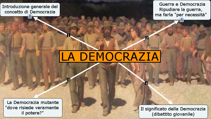 mappa democrazia, LA DEMOCRAZIA 3 La Democrazia mutante "dove risiede veramente il potere?", LA DEMOCRAZIA 4 Il significato della Democrazia (dibattito giovanile), LA DEMOCRAZIA 2 Guerra e Democrazia Ripudiare la guerra, ma farla "per necessità", LA DEMOCRAZIA 1 Introduzione generale del concetto di Democrazia, LA DEMOCRAZIA 2 Guerra e Democrazia Ripudiare la guerra, ma farla "per necessità"