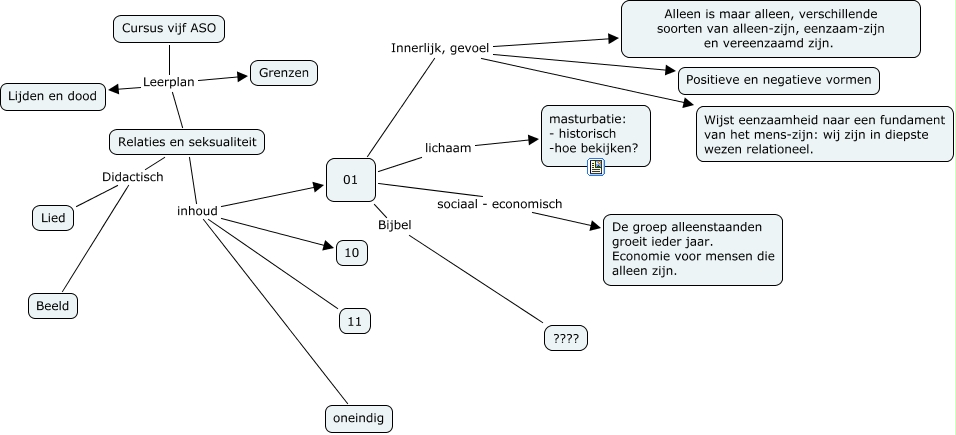 5 ASO, 01 Innerlijk, gevoel Positieve en negatieve vormen, 01 lichaam masturbatie: - historisch -hoe bekijken?, Relaties en seksualiteit inhoud 01, Relaties en seksualiteit Didactisch Beeld, Cursus vijf ASO Leerplan Relaties en seksualiteit, Relaties en seksualiteit Didactisch Lied, Relaties en seksualiteit inhoud 11, Cursus vijf ASO Leerplan Lijden en dood, Relaties en seksualiteit inhoud 10, 01 Innerlijk, gevoel Alleen is maar alleen, verschillende soorten van alleen-zijn, eenzaam-zijn en vereenzaamd zijn.