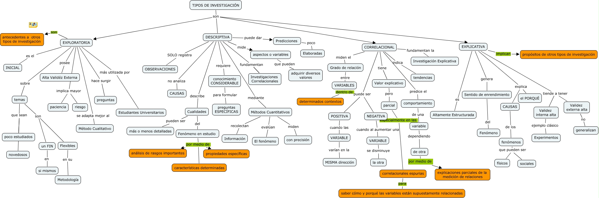 aporte del grupo de Gloriana, Luis, Alexandra y Lena, EXPLICATIVA explica el PORQUÉ, de otra por medio de explicaciones parciales de la medición de relaciones, Cualidades pueden ser más o menos detalladas, CORRELACIONAL puede ser NEGATIVA, Sentido de enrendimiento del Fenómeno, CORRELACIONAL tiene Valor explicativo, variable dependiendo de otra, VARIABLE se disminuye la otra, CORRELACIONAL indica tendencias, DESCRIPTIVA fundamentan Investigaciones Correlacionales