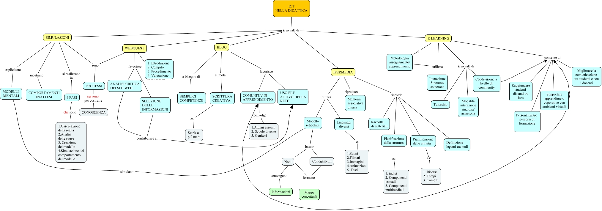 ICT, E-LEARNING consente di Migliorare la comunicazione tra studenti e con i docenti, E-LEARNING consente di Personalizzare percorsi di formazione, 1.Suoni 2.Filmati 3.Immagini 4.Animazioni 5. Testi es Linguaggi diversi, SIMULAZIONI esplicitano MODELLI MENTALI, Condivisione a livello di community consente di Migliorare la comunicazione tra studenti e con i docenti, Pianificazione della struttura richiede IPERMEDIA, SIMULAZIONI si realizzano in 4 FASI, SIMULAZIONI sono PROCESSI, COMUNITA' DI APPRENDIMENTO coinvolge 1.Alunni assenti 2. Scuole diverse 3. Genitori, WEBQUEST favorisce ANALISI CRITICA DEI SITI WEB