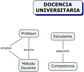 Docencia Universitaria, Profesor emplea Método Docente, Profesor evalúa Método Docente, Estudiante adquiere Competencia