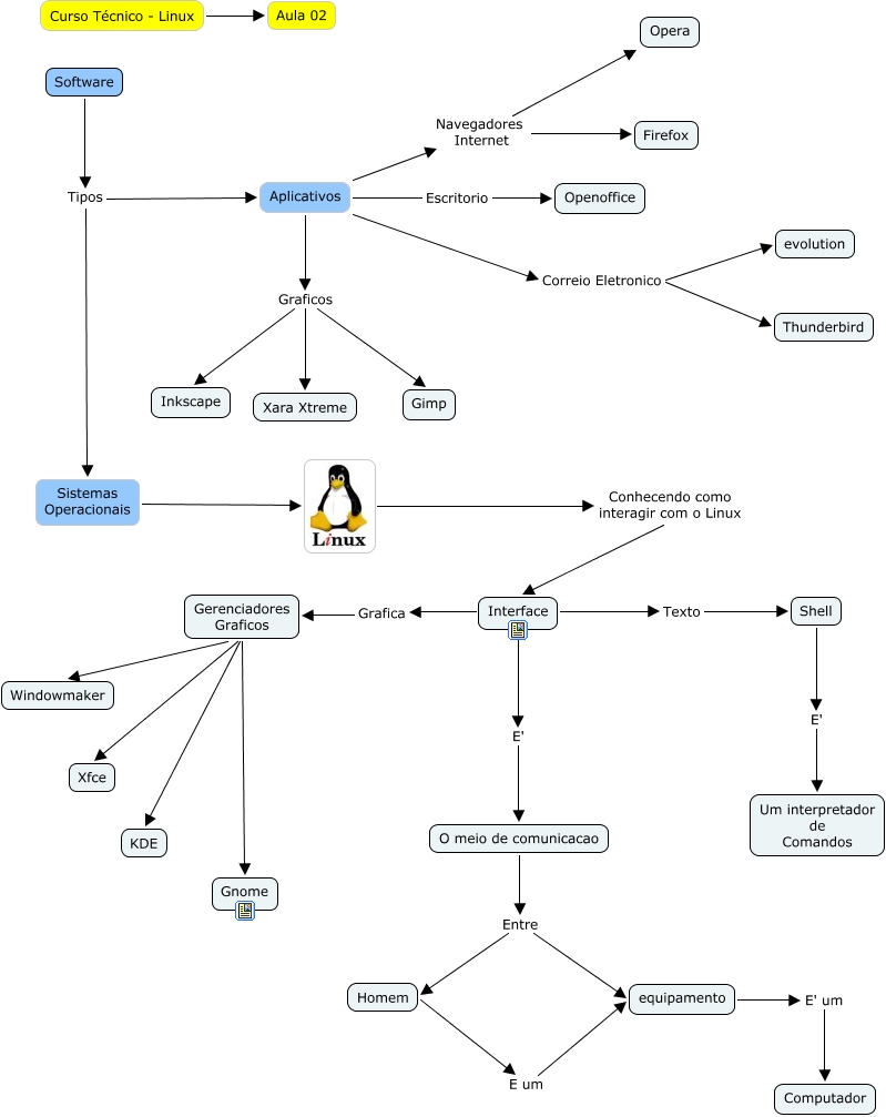 Curso Tecnico - Aula 02, Aplicativos Correio Eletronico evolution, Aplicativos Graficos Gimp, Software Tipos Sistemas Operacionais, Curso Técnico - Linux Aula 02, equipamento E' um Computador, Software Tipos Aplicativos, Interface Texto Shell, O meio de comunicacao Entre equipamento, Aplicativos Navegadores Internet Opera, Gerenciadores Graficos Xfce