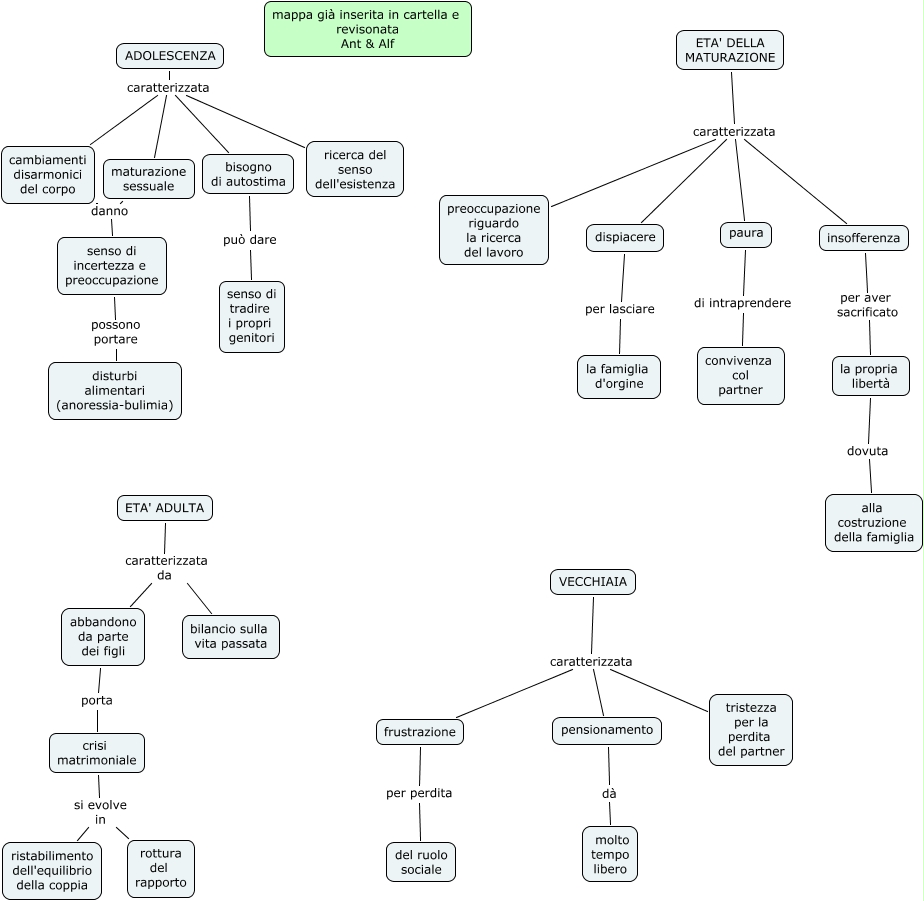 stati d'animo nel ciclo di vita, cambiamenti disarmonici del corpo danno senso di incertezza e preoccupazione, ETA' DELLA MATURAZIONE caratterizzata preoccupazione riguardo la ricerca del lavoro, ADOLESCENZA caratterizzata cambiamenti disarmonici del corpo, senso di incertezza e preoccupazione possono portare disturbi alimentari (anoressia-bulimia), insofferenza per aver sacrificato la propria libertà, bisogno di autostima può dare senso di tradire i propri genitori, pensionamento dà molto tempo libero, ETA' ADULTA caratterizzata da abbandono da parte dei figli, frustrazione per perdita del ruolo sociale, paura di intraprendere convivenza col partner