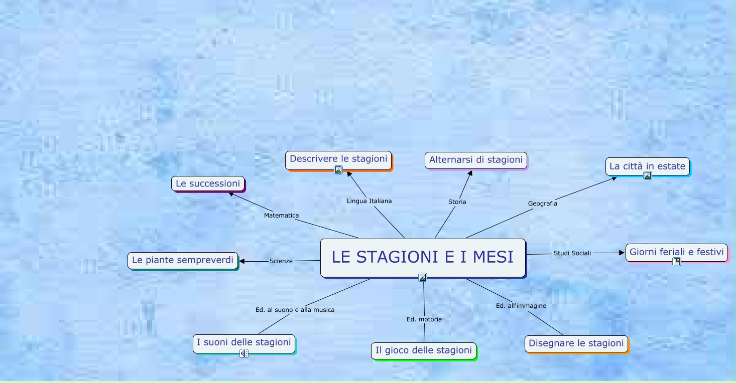 Stagioni e mesi, LE STAGIONI E I MESI Geografia La città in estate, LE STAGIONI E I MESI Storia Alternarsi di stagioni, LE STAGIONI E I MESI Studi Sociali Giorni feriali e festivi, LE STAGIONI E I MESI Ed. motoria Il gioco delle stagioni, LE STAGIONI E I MESI Ed. all'immagine Disegnare le stagioni, LE STAGIONI E I MESI Lingua Italiana Descrivere le stagioni, LE STAGIONI E I MESI Ed. al suono e alla musica I suoni delle stagioni, LE STAGIONI E I MESI Scienze Le piante sempreverdi, LE STAGIONI E I MESI Matematica Le successioni