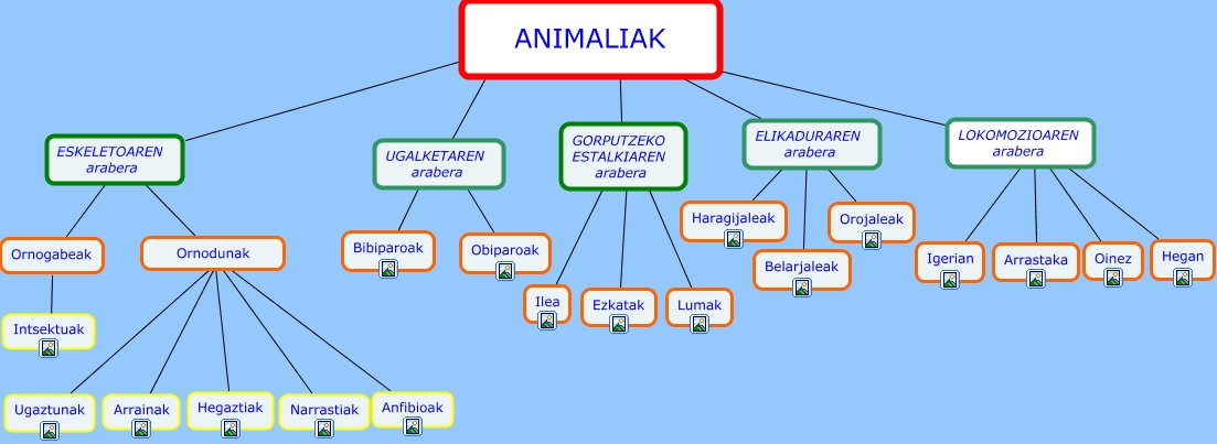 Este mapa conceptual tiene información relacionada a: animaliak, LOKOMOZIOAREN arabera ???? Hegan, GORPUTZEKO ESTALKIAREN arabera ???? Lumak, ESKELETOAREN arabera ???? Ornogabeak, UGALKETAREN arabera ???? Bibiparoak, ANIMALIAK ???? GORPUTZEKO ESTALKIAREN arabera, Ornodunak ???? Anfibioak, Ornogabeak ???? Intsektuak, UGALKETAREN arabera ???? Obiparoak, ANIMALIAK ESKELETOAREN arabera, Ornodunak ???? ESKELETOAREN arabera, Ornodunak ???? Ugaztunak, ANIMALIAK ???? ELIKADURAREN arabera, ELIKADURAREN arabera ???? Belarjaleak, LOKOMOZIOAREN arabera ???? Arrastaka, LOKOMOZIOAREN arabera ???? Oinez, ELIKADURAREN arabera ???? Haragijaleak, ELIKADURAREN arabera ???? Orojaleak, GORPUTZEKO ESTALKIAREN arabera ???? Ilea, ANIMALIAK ???? LOKOMOZIOAREN arabera, ANIMALIAK UGALKETAREN arabera