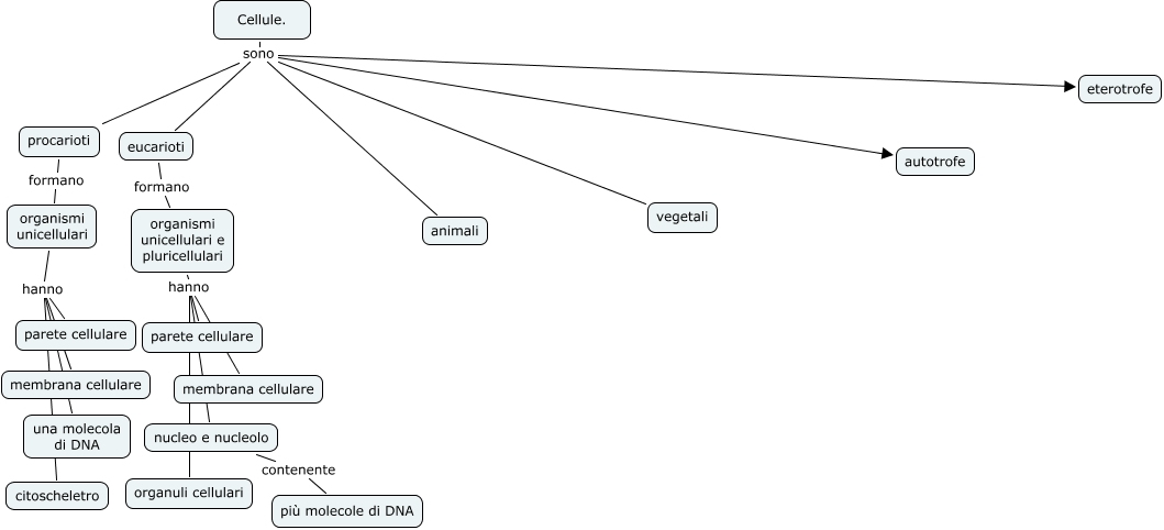 Questa Cmap, creata con IHMC CmapTools, contiene informazioni relative a: La cellula laura francesco, organismi unicellulari e pluricellulari hanno membrana cellulare, Cellule. sono eucarioti, procarioti formano organismi unicellulari, organismi unicellulari e pluricellulari hanno parete cellulare, Cellule. sono vegetali, Cellule. sono animali, organismi unicellulari hanno membrana cellulare, organismi unicellulari e pluricellulari hanno organuli cellulari, eucarioti formano organismi unicellulari e pluricellulari, Cellule. sono eterotrofe, organismi unicellulari hanno citoscheletro, Cellule. sono procarioti, nucleo e nucleolo contenente più molecole di DNA, organismi unicellulari e pluricellulari hanno nucleo e nucleolo, organismi unicellulari hanno parete cellulare, Cellule. sono autotrofe, organismi unicellulari hanno una molecola di DNA