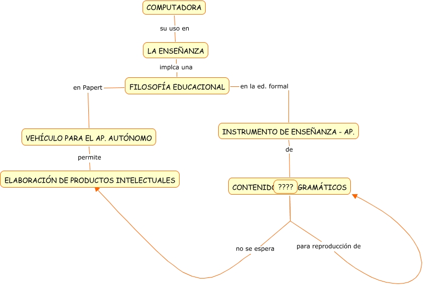 Ana Medeiros,Graciela Machado, VEHÍCULO PARA EL AP. AUTÓNOMO permite ELABORACIÓN DE PRODUCTOS INTELECTUALES, FILOSOFÍA EDUCACIONAL en la ed. formal INSTRUMENTO DE ENSEÑANZA - AP., COMPUTADORA su uso en LA ENSEÑANZA, FILOSOFÍA EDUCACIONAL en Papert VEHÍCULO PARA EL AP. AUTÓNOMO, LA ENSEÑANZA implca una FILOSOFÍA EDUCACIONAL, INSTRUMENTO DE ENSEÑANZA - AP. de CONTENIDOS PROGRAMÁTICOS, CONTENIDOS PROGRAMÁTICOS no se espera