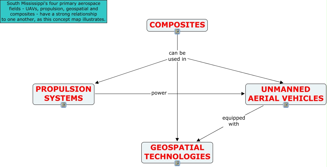 expertise synergies, UNMANNED AERIAL VEHICLES equipped with GEOSPATIAL TECHNOLOGIES, COMPOSITES can be used in UNMANNED AERIAL VEHICLES, COMPOSITES can be used in GEOSPATIAL TECHNOLOGIES, PROPULSION SYSTEMS power UNMANNED AERIAL VEHICLES, COMPOSITES can be used in PROPULSION SYSTEMS