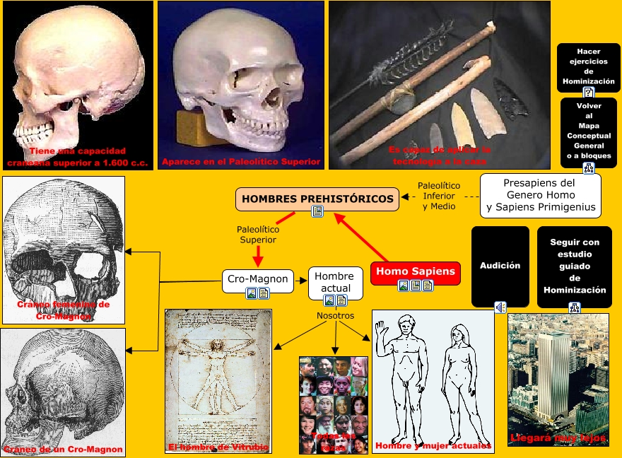 Homo Sapiens, HOMBRES PREHISTÓRICOS Paleolítico Superior Cro-Magnon, Presapiens del Genero Homo y Sapiens Primigenius Paleolítico Inferior y Medio HOMBRES PREHISTÓRICOS, Hombre actual Nosotros El hombre de Vitrubio, Cro-Magnon ???? Cráneo femenino de Cro-Magnon, Cro-Magnon ???? Hombre actual, Homo Sapiens HOMBRES PREHISTÓRICOS, Hombre actual Nosotros Hombre y mujer actuales, Cro-Magnon ???? Craneo de un Cro-Magnon, Hombre actual Nosotros Todas las razas