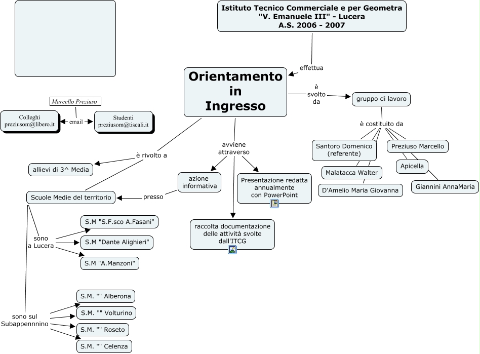 Orientamento in ingresso, Marcello Preziuso email Colleghi preziusom@libero.it, Orientamento in Ingresso è rivolto a allievi di 3^ Media, Scuole Medie del territorio sono a Lucera S.M "Dante Alighieri", Scuole Medie del territorio sono sul Subappennnino S.M. "" Alberona, Marcello Preziuso email Studenti preziusom@tiscali.it, Orientamento in Ingresso avviene attraverso azione informativa, gruppo di lavoro è costituito da Apicella, gruppo di lavoro è costituito da D'Amelio Maria Giovanna, Scuole Medie del territorio sono sul Subappennnino S.M. "" Celenza, Orientamento in Ingresso è rivolto a Scuole Medie del territorio