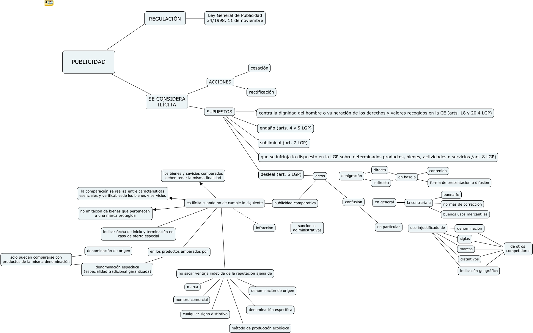 publicidad, en los productos amparados por ???? denominación específica (especialidad tradicional garantizada), SE CONSIDERA ILÍCITA ???? ACCIONES, REGULACIÓN ???? Ley General de Publicidad 34/1998, 11 de noviembre, denominación de origen ???? sólo pueden compararse con productos de la misma denominación, denigración ???? indirecta, en base a ???? forma de presentación o difusión, ACCIONES ???? cesación, uso injustificado de ???? indicación geográfica, publicidad comparativa es ilícita cuando no cumple lo siguiente indicar fecha de inicio y terminación en caso de oferta especial, en general ???? la contraria a