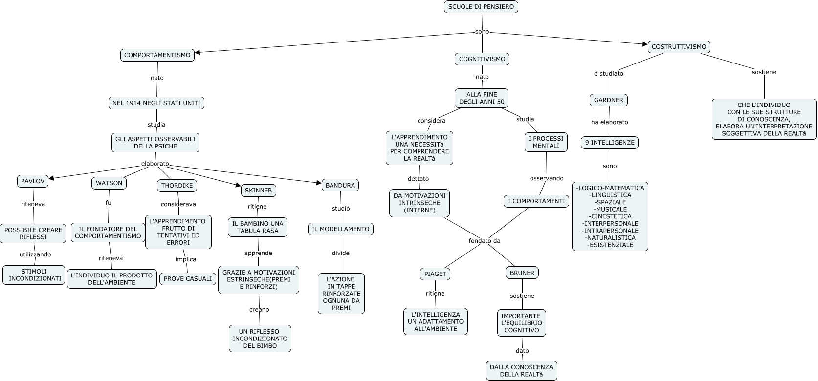 Questa Cmap, creata con IHMC CmapTools, contiene informazioni relative a: apprendimento 9, DA MOTIVAZIONI INTRINSECHE (INTERNE) fondato da BRUNER, IL BAMBINO UNA TABULA RASA apprende GRAZIE A MOTIVAZIONI ESTRINSECHE(PREMI E RINFORZI), I COMPORTAMENTI fondato da PIAGET, COGNITIVISMO nato ALLA FINE DEGLI ANNI 50, 9 INTELLIGENZE sono -LOGICO-MATEMATICA -LINGUISTICA -SPAZIALE -MUSICALE -CINESTETICA -INTERPERSONALE -INTRAPERSONALE -NATURALISTICA -ESISTENZIALE, GRAZIE A MOTIVAZIONI ESTRINSECHE(PREMI E RINFORZI) creano UN RIFLESSO INCONDIZIONATO DEL BIMBO, PIAGET ritiene L'INTELLIGENZA UN ADATTAMENTO ALL'AMBIENTE, GLI ASPETTI OSSERVABILI DELLA PSICHE elaborato SKINNER, WATSON fu IL FONDATORE DEL COMPORTAMENTISMO, IL FONDATORE DEL COMPORTAMENTISMO riteneva L'INDIVIDUO IL PRODOTTO DELL'AMBIENTE, SCUOLE DI PENSIERO sono COGNITIVISMO, GLI ASPETTI OSSERVABILI DELLA PSICHE elaborato BANDURA, IMPORTANTE L'EQUILIBRIO COGNITIVO dato DALLA CONOSCENZA DELLA REALTà, GLI ASPETTI OSSERVABILI DELLA PSICHE elaborato WATSON, L'APPRENDIMENTO UNA NECESSITà PER COMPRENDERE LA REALTà dettato DA MOTIVAZIONI INTRINSECHE (INTERNE), NEL 1914 NEGLI STATI UNITI studia GLI ASPETTI OSSERVABILI DELLA PSICHE, BANDURA studiò IL MODELLAMENTO, POSSIBILE CREARE RIFLESSI utilizzando STIMOLI INCONDIZIONATI, I PROCESSI MENTALI osservando I COMPORTAMENTI, ALLA FINE DEGLI ANNI 50 studia I PROCESSI MENTALI