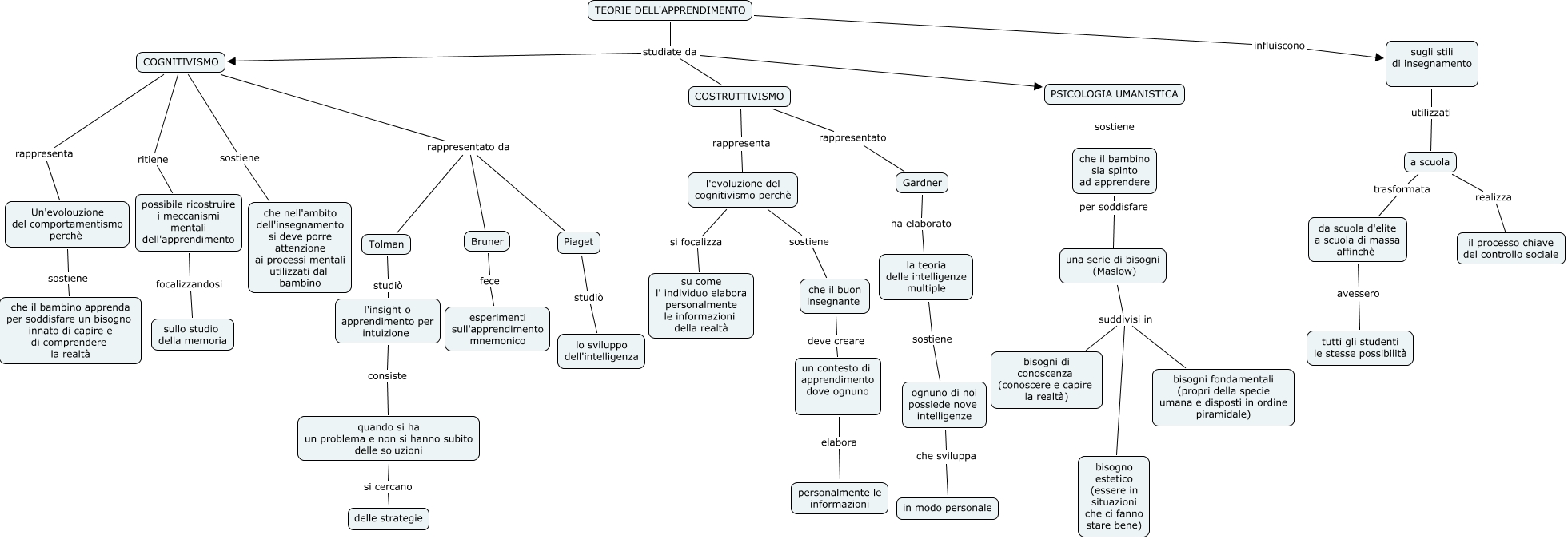 Questa Cmap, creata con IHMC CmapTools, contiene informazioni relative a: apprendimento 3, da scuola d'elite a scuola di massa affinchè avessero tutti gli studenti le stesse possibilità, quando si ha un problema e non si hanno subito delle soluzioni si cercano delle strategie, una serie di bisogni (Maslow) suddivisi in bisogno estetico (essere in situazioni che ci fanno stare bene), COGNITIVISMO ritiene possibile ricostruire i meccanismi mentali dell'apprendimento, possibile ricostruire i meccanismi mentali dell'apprendimento focalizzandosi sullo studio della memoria, che il bambino sia spinto ad apprendere per soddisfare una serie di bisogni (Maslow), Bruner fece esperimenti sull'apprendimento mnemonico, una serie di bisogni (Maslow) suddivisi in bisogni di conoscenza (conoscere e capire la realtà), TEORIE DELL'APPRENDIMENTO studiate da COSTRUTTIVISMO, la teoria delle intelligenze multiple sostiene ognuno di noi possiede nove intelligenze, Un'evolouzione del comportamentismo perchè sostiene che il bambino apprenda per soddisfare un bisogno innato di capire e di comprendere la realtà, TEORIE DELL'APPRENDIMENTO studiate da PSICOLOGIA UMANISTICA, COGNITIVISMO rappresentato da Bruner, l'evoluzione del cognitivismo perchè sostiene che il buon insegnante, TEORIE DELL'APPRENDIMENTO influiscono sugli stili di insegnamento, COGNITIVISMO rappresentato da Tolman, COSTRUTTIVISMO rappresenta l'evoluzione del cognitivismo perchè, TEORIE DELL'APPRENDIMENTO studiate da COGNITIVISMO, un contesto di apprendimento dove ognuno elabora personalmente le informazioni, ognuno di noi possiede nove intelligenze che sviluppa in modo personale
