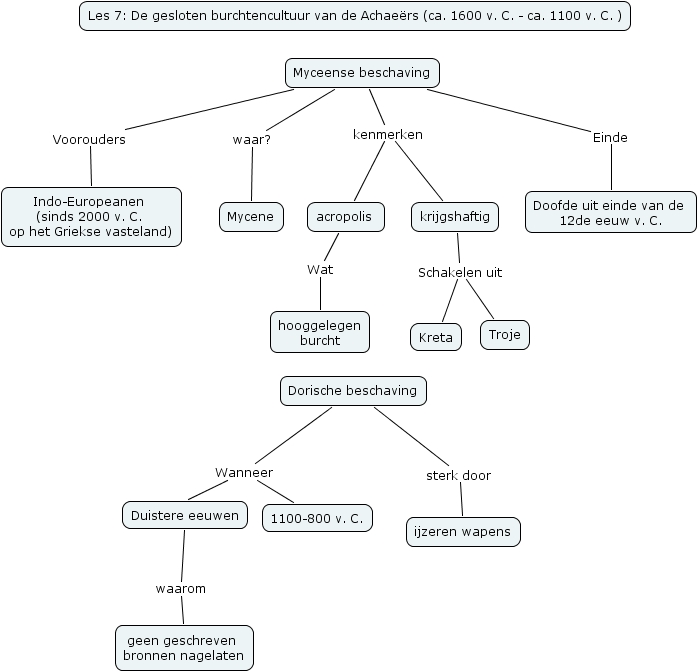 2AA NELE VANDERSTRAETEN LES 7, Duistere eeuwen waarom geen geschreven bronnen nagelaten, Myceense beschaving waar? Mycene, Myceense beschaving Einde Doofde uit einde van de 12de eeuw v. C., Dorische beschaving Wanneer 1100-800 v. C., acropolis Wat hooggelegen burcht, krijgshaftig Schakelen uit Kreta, Myceense beschaving Voorouders Indo-Europeanen (sinds 2000 v. C. op het Griekse vasteland), Myceense beschaving kenmerken krijgshaftig, Myceense beschaving kenmerken acropolis, krijgshaftig Schakelen uit Troje