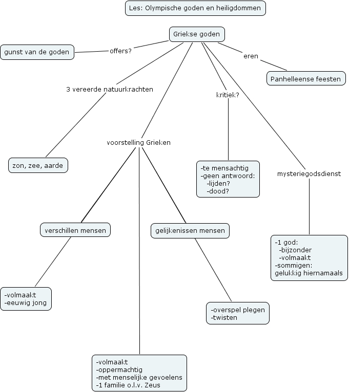 2AA Lise Van Mol Les19, Griekse goden eren Panhelleense feesten, Griekse goden voorstelling Grieken -overspel plegen -twisten, Griekse goden voorstelling Grieken -volmaakt -oppermachtig -met menselijke gevoelens -1 familie o.l.v. Zeus, Griekse goden mysteriegodsdienst -1 god: -bijzonder -volmaakt -sommigen: gelukkig hiernamaals, Griekse goden kritiek? -te mensachtig -geen antwoord: -lijden? -dood?, Griekse goden voorstelling Grieken gelijkenissen mensen, Griekse goden voorstelling Grieken -volmaakt -eeuwig jong, Griekse goden 3 vereerde natuurkrachten zon, zee, aarde, Griekse goden offers? gunst van de goden, Griekse goden voorstelling Grieken verschillen mensen