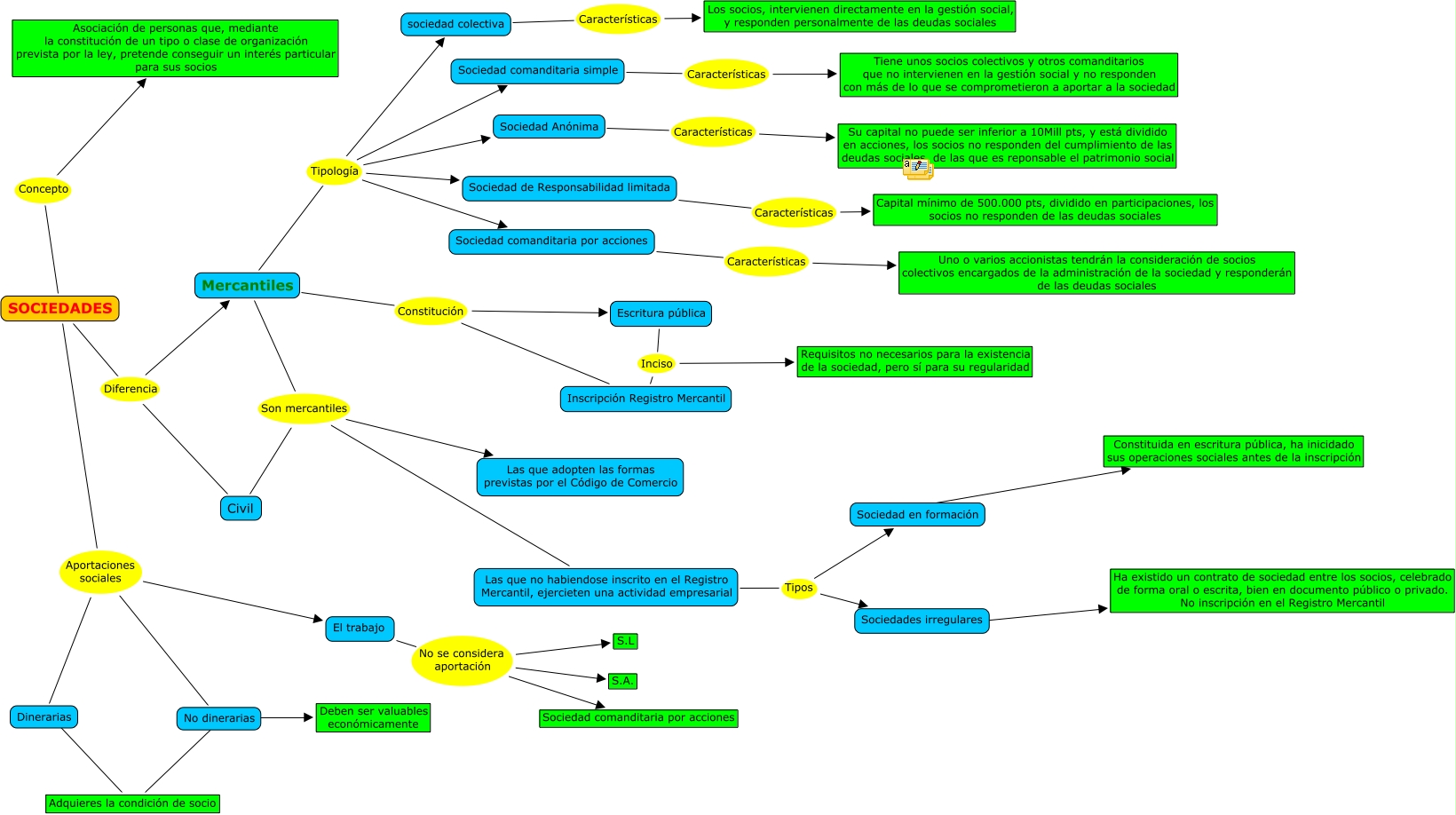 Mapa problema 1º EL PRINCIPI DE TOT PLEGATJessica Herrera Palma, Mercantiles Son mercantiles Las que no habiendose inscrito en el Registro Mercantil, ejercieten una actividad empresarial, SOCIEDADES Aportaciones sociales Dinerarias, No dinerarias ???? Adquieres la condición de socio, Mercantiles Son mercantiles Civil, El trabajo No se considera aportación Sociedad comanditaria por acciones, Las que no habiendose inscrito en el Registro Mercantil, ejercieten una actividad empresarial Tipos Sociedades irregulares, Dinerarias ???? Adquieres la condición de socio, Sociedad comanditaria simple Características Tiene unos socios colectivos y otros comanditarios que no intervienen en la gestión social y no responden con más de lo que se comprometieron a aportar a la sociedad, SOCIEDADES Concepto Asociación de personas que, mediante la constitución de un tipo o clase de organización prevista por la ley, pretende conseguir un interés particular para sus socios, Las que no habiendose inscrito en el Registro Mercantil, ejercieten una actividad empresarial Tipos Sociedad en formación