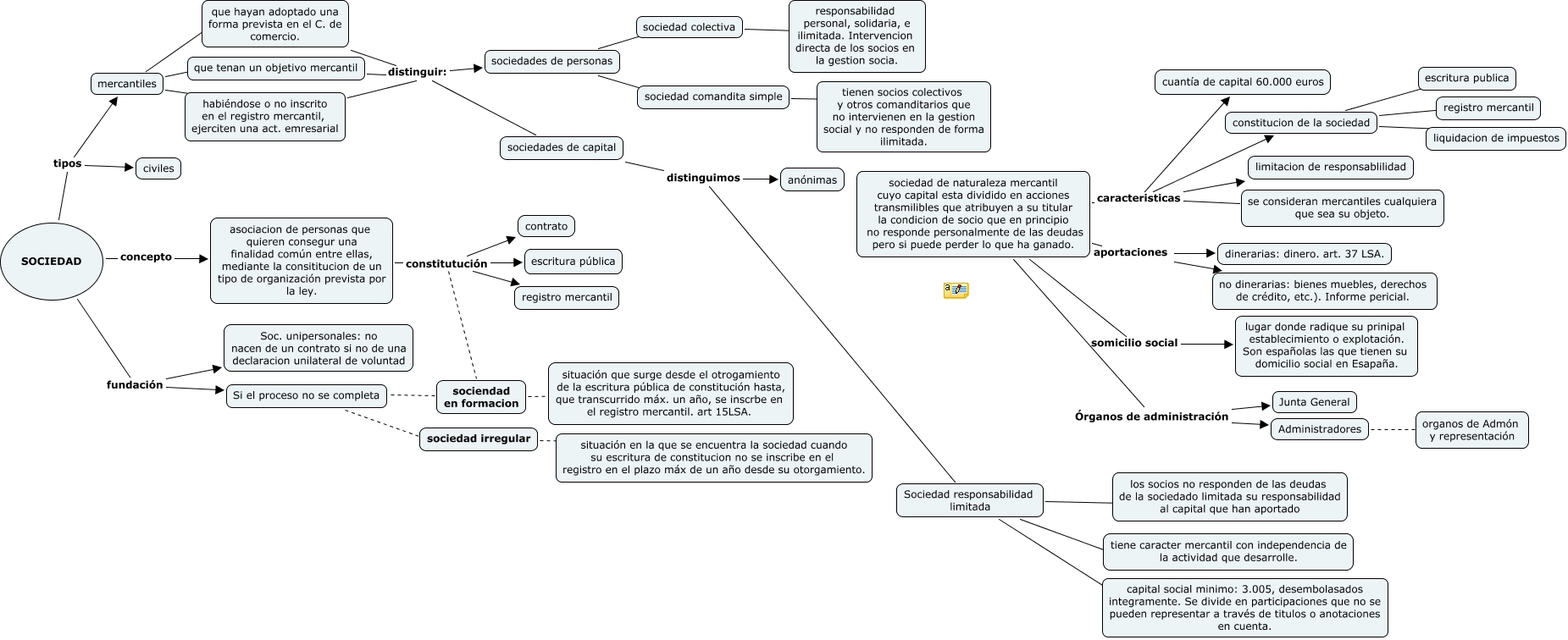 SOCIEDADES CASO núm 1, que tenan un objetivo mercantil distinguir: sociedades de capital, habiéndose o no inscrito en el registro mercantil, ejerciten una act. emresarial distinguir: sociedades de personas, Si el proceso no se completa ???? sociedad irregular, que hayan adoptado una forma prevista en el C. de comercio. distinguir: sociedades de personas, sociedad colectiva ???? responsabilidad personal, solidaria, e ilimitada. Intervencion directa de los socios en la gestion socia., sociedades de capital distinguimos anónimas, sociedad de naturaleza mercantil cuyo capital esta dividido en acciones transmilibles que atribuyen a su titular la condicion de socio que en principio no responde personalmente de las deudas pero si puede perder lo que ha ganado. caracteristicas constitucion de la sociedad, sociedad de naturaleza mercantil cuyo capital esta dividido en acciones transmilibles que atribuyen a su titular la condicion de socio que en principio no responde personalmente de las deudas pero si puede perder lo que ha ganado. aportaciones no dinerarias: bienes muebles, derechos de crédito, etc.). Informe pericial., mercantiles ???? que tenan un objetivo mercantil, asociacion de personas que quieren consegur una finalidad común entre ellas, mediante la consititucion de un tipo de organización prevista por la ley. constitutución registro mercantil