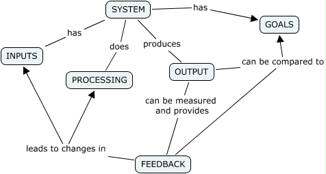 What is an Information System, FEEDBACK leads to changes in PROCESSING, FEEDBACK leads to changes in INPUTS, OUTPUT can be measured and provides FEEDBACK, OUTPUT can be compared to FEEDBACK, OUTPUT can be compared to GOALS, SYSTEM has GOALS, SYSTEM produces OUTPUT, SYSTEM does PROCESSING, SYSTEM has INPUTS