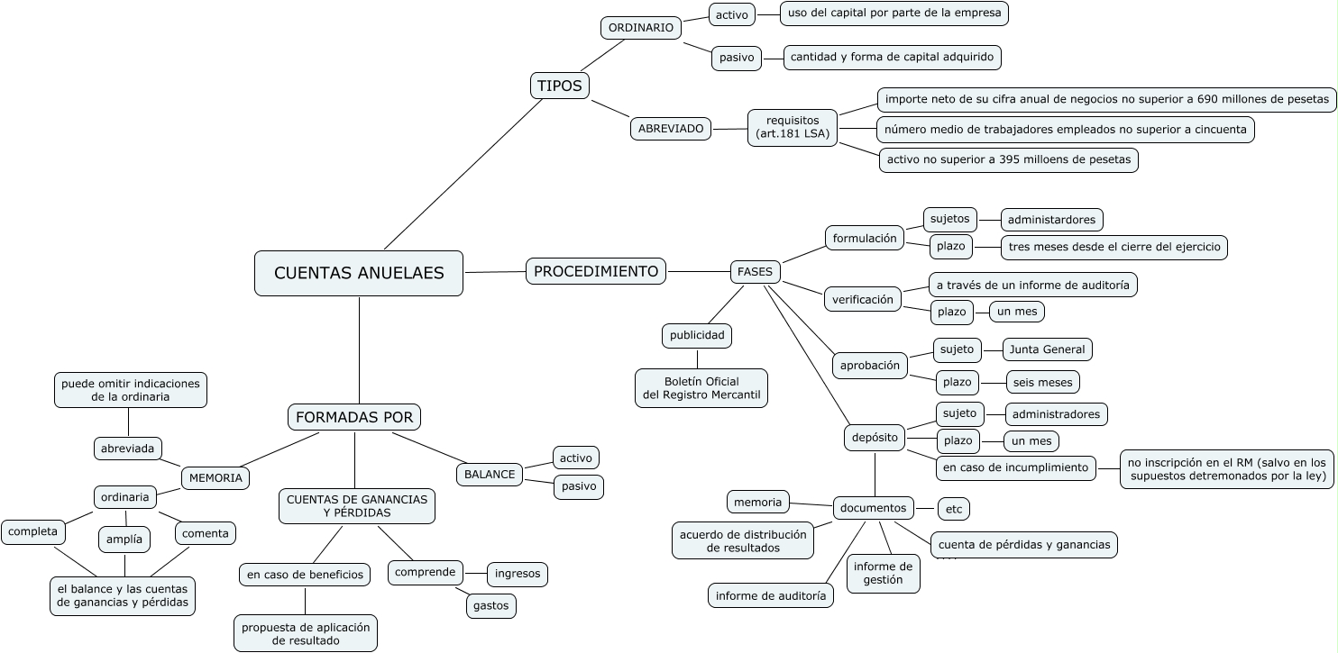 cuentas anuales, plazo ???? un mes, ORDINARIO ???? activo, documentos ???? informe de auditoría, FASES ???? publicidad, PROCEDIMIENTO ???? FASES, MEMORIA ???? ordinaria, en caso de beneficios ???? propuesta de aplicación de resultado, FORMADAS POR ???? MEMORIA, MEMORIA ???? abreviada, FORMADAS POR ???? BALANCE