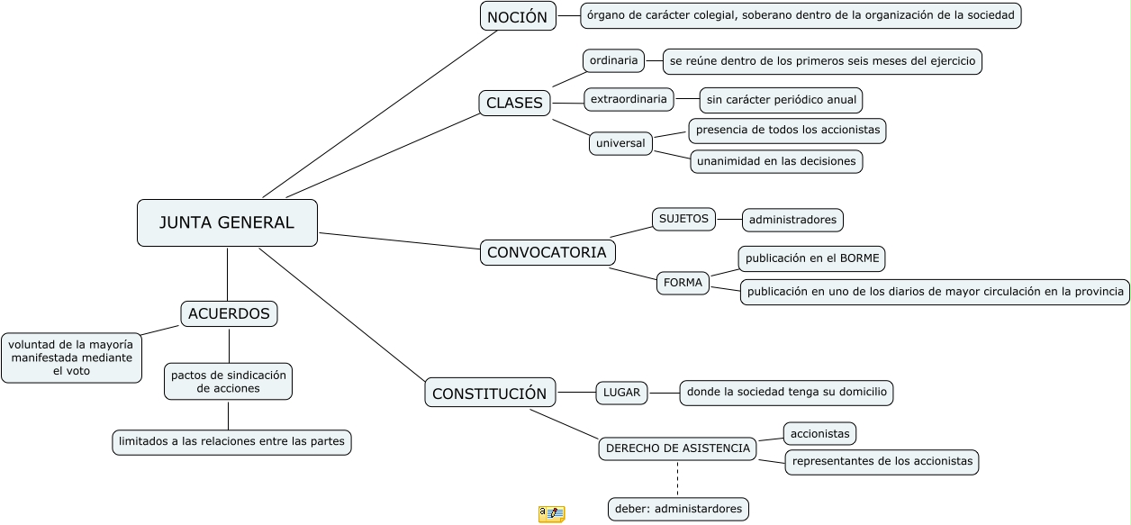 junta general, FORMA ???? publicación en uno de los diarios de mayor circulación en la provincia, SUJETOS ???? administradores, JUNTA GENERAL ???? ACUERDOS, universal ???? presencia de todos los accionistas, CONVOCATORIA ???? SUJETOS, JUNTA GENERAL ???? CONVOCATORIA, CONVOCATORIA ???? FORMA, FORMA ???? publicación en el BORME, CONSTITUCIÓN ???? DERECHO DE ASISTENCIA, CLASES ???? extraordinaria